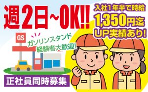職種【未経験OK/週2日〜】ガソリンスタンドスタッフ|時給1,100円〜|高校生OK