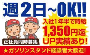 | 職種 | 【未経験OK/週2日〜】ガソリンスタンドスタッフ|時給1,100円〜|高校生OK |