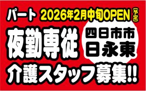 仕事内容2月中旬オープン予定、サービス付き高齢者向け住宅「ゴールドエイジ南四日市」での夜間帯での介護業務です。